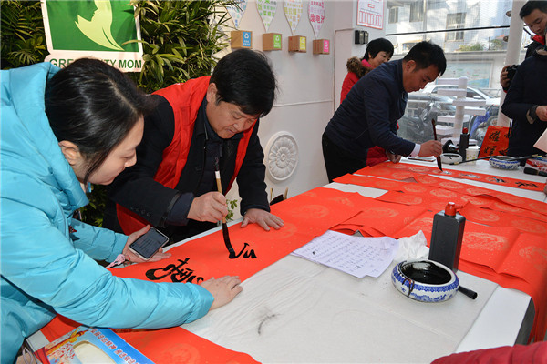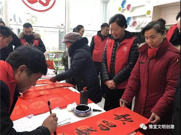 在“迎新春、送春聯(lián)”活動(dòng)現(xiàn)場(chǎng),書(shū)法家們揮毫潑墨,為廣大黨員群眾書(shū)寫(xiě)春聯(lián),吸引了多名書(shū)法愛(ài)好者現(xiàn)場(chǎng)求教;黨員群眾們拿著剛寫(xiě)好的還飄著墨香的春聯(lián),欣賞、贊嘆、感謝聲不絕于耳。