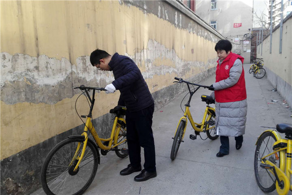 志愿者們冒著寒風(fēng)和低溫,清理家屬院里違規(guī)停放小黃車(chē),并引導(dǎo)社區(qū)居民講文明、樹(shù)新風(fēng),養(yǎng)成良好的行為習(xí)慣。經(jīng)過(guò)一個(gè)多小時(shí)的勞動(dòng),雖然手都凍紅了,但看到近百輛擺放的整整齊齊的單車(chē)和井然有序的院子,大家都有滿(mǎn)滿(mǎn)的成就感,也體會(huì)到了奉獻(xiàn)的快樂(lè)。